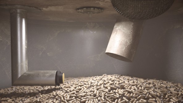 In pellet heating systems, pellets from big bags or other storage containers are sucked into the suction chamber until it is filled to the defined point level. This results in the formation of a cone of pellets in the suction chamber, which makes the measurement at the edge of the container imprecise. The point level measurement must therefore be taken from the center of the suction chamber. Optical sensors are unsuitable here due to the buildup of dust.
