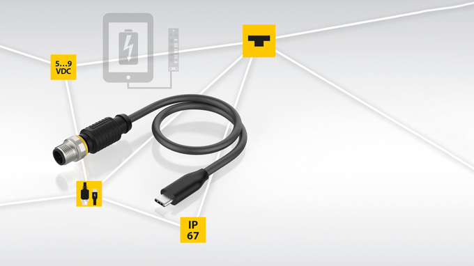 Charge mobile devices directly at the M12 socket: TURCK's M12 USB charging cable makes it possible