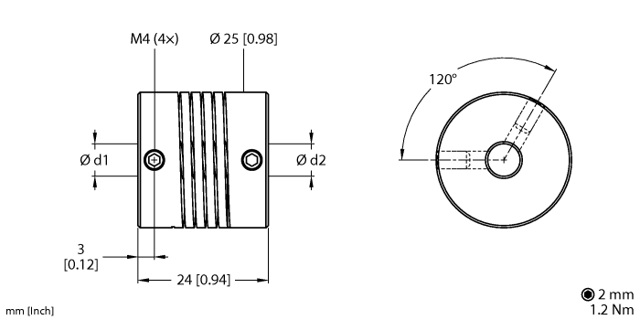 Bore diameter d1 = 10 mm, d2 = 10 mm